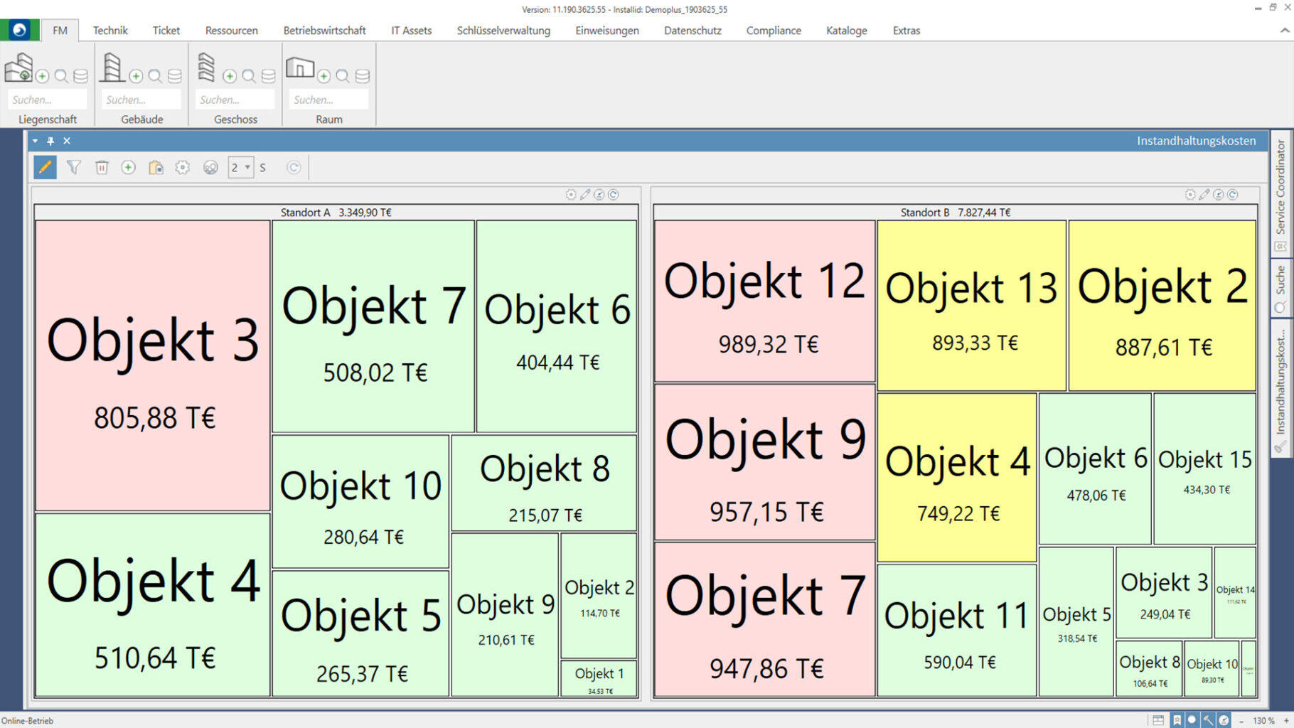 Das umfassende Analyse-Tool ermöglicht die systematische Auswertung sämtlicher Daten der CAFM-Software wave Facilities. Mithilfe des vollständig in wave Facilities integrierten Werkzeugs werden Einsparpotentiale erkannt, Schwachstellen aufgedeckt und Benchmarks ermittelt. Damit bringt die Software die notwendige Transparenz in Ihr Unternehmen und bildet die ideale Grundlage für Ihren kontinuierlichen Verbesserungsprozess. Die enorme Detailtiefe und die uneingeschränkte Flexibilität in der Konfiguration des Auswertungstools machen wave Facilities zu einer führenden CAFM-Software.