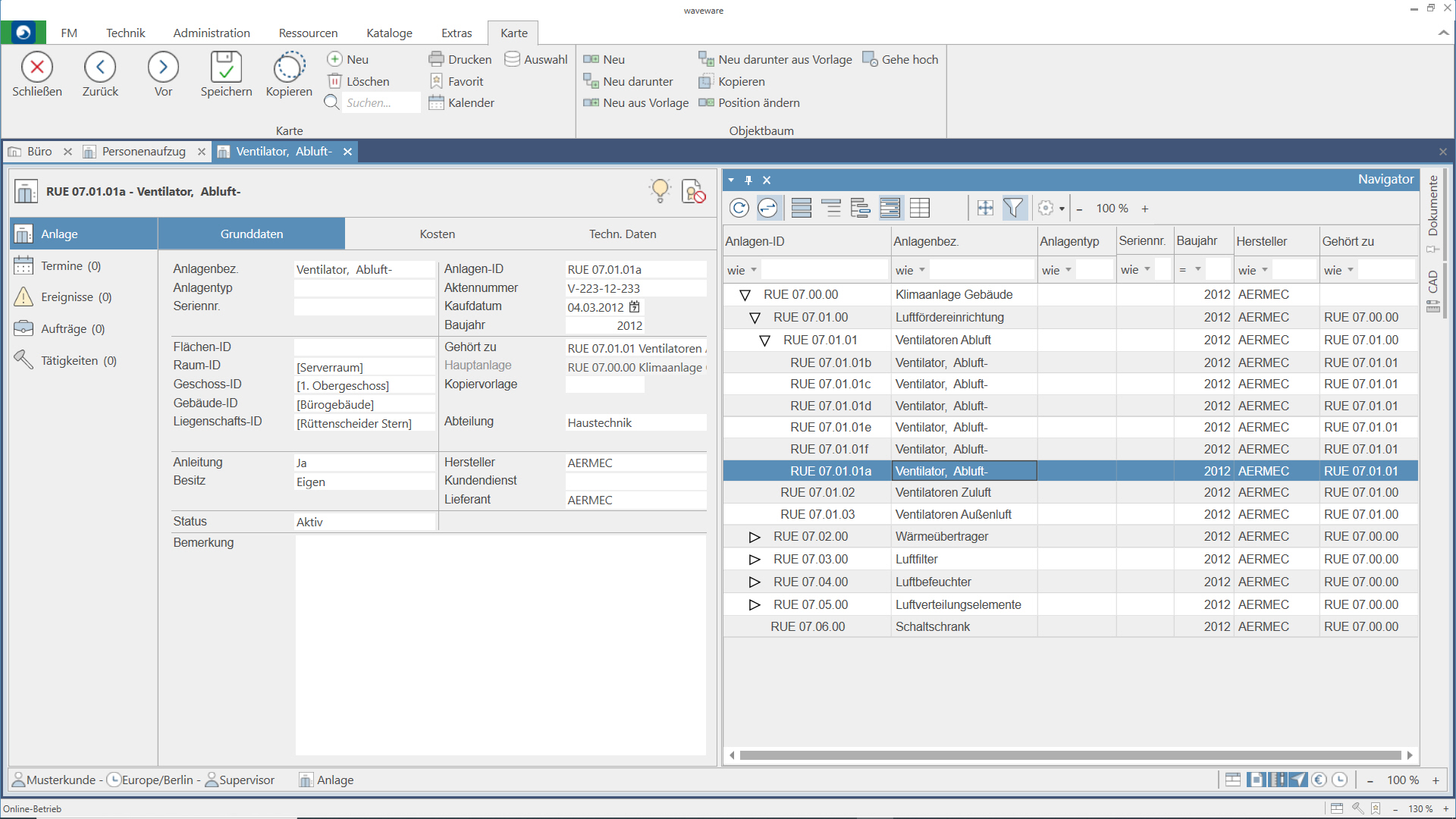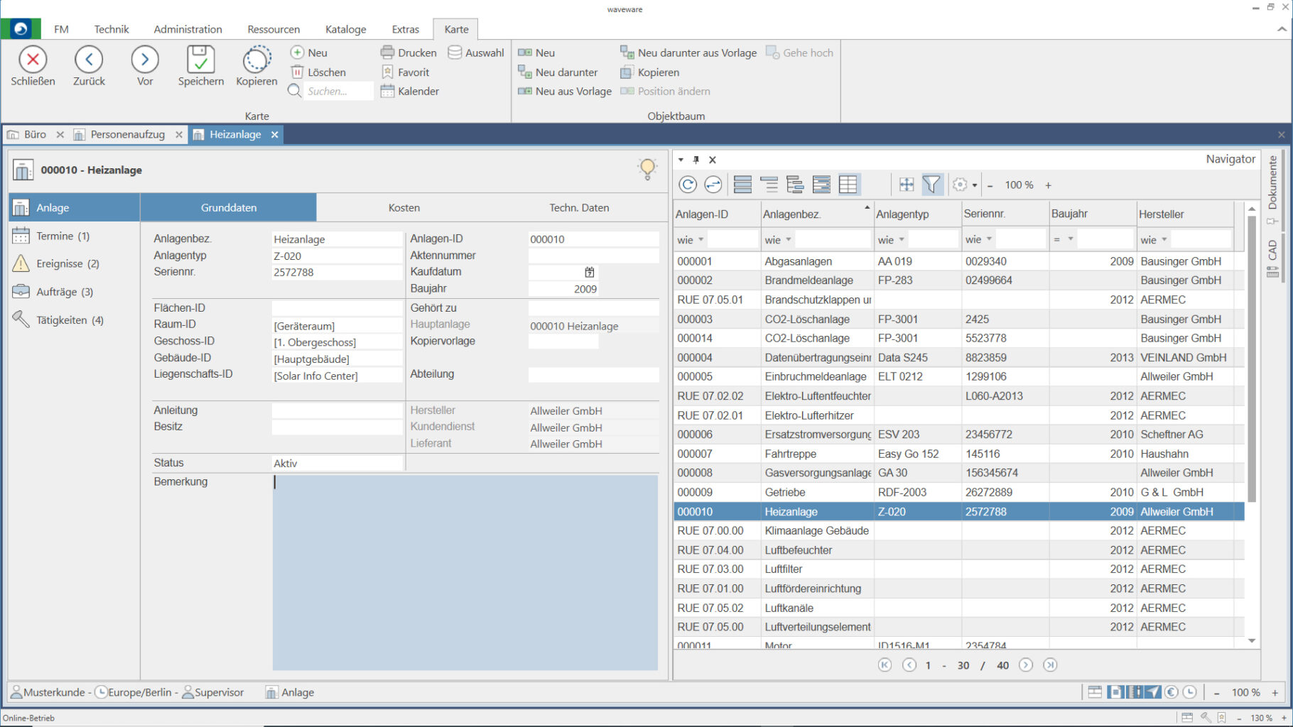 Der Navigator stellt die folgenden sowie weitere – individuell konfigurierbare – Darstellungsarten in jeder waveware® Installation zur Verfügung. Weiterhin können durch Systemadministratoren eine Vielzahl von Einstellungen vorgenommen werden. Hierzu gehört z.B. die Möglichkeit, per Rechteverwaltung sensible Daten für bestimmte Personengruppen von der Anzeige im Navigator auszuschließen.
