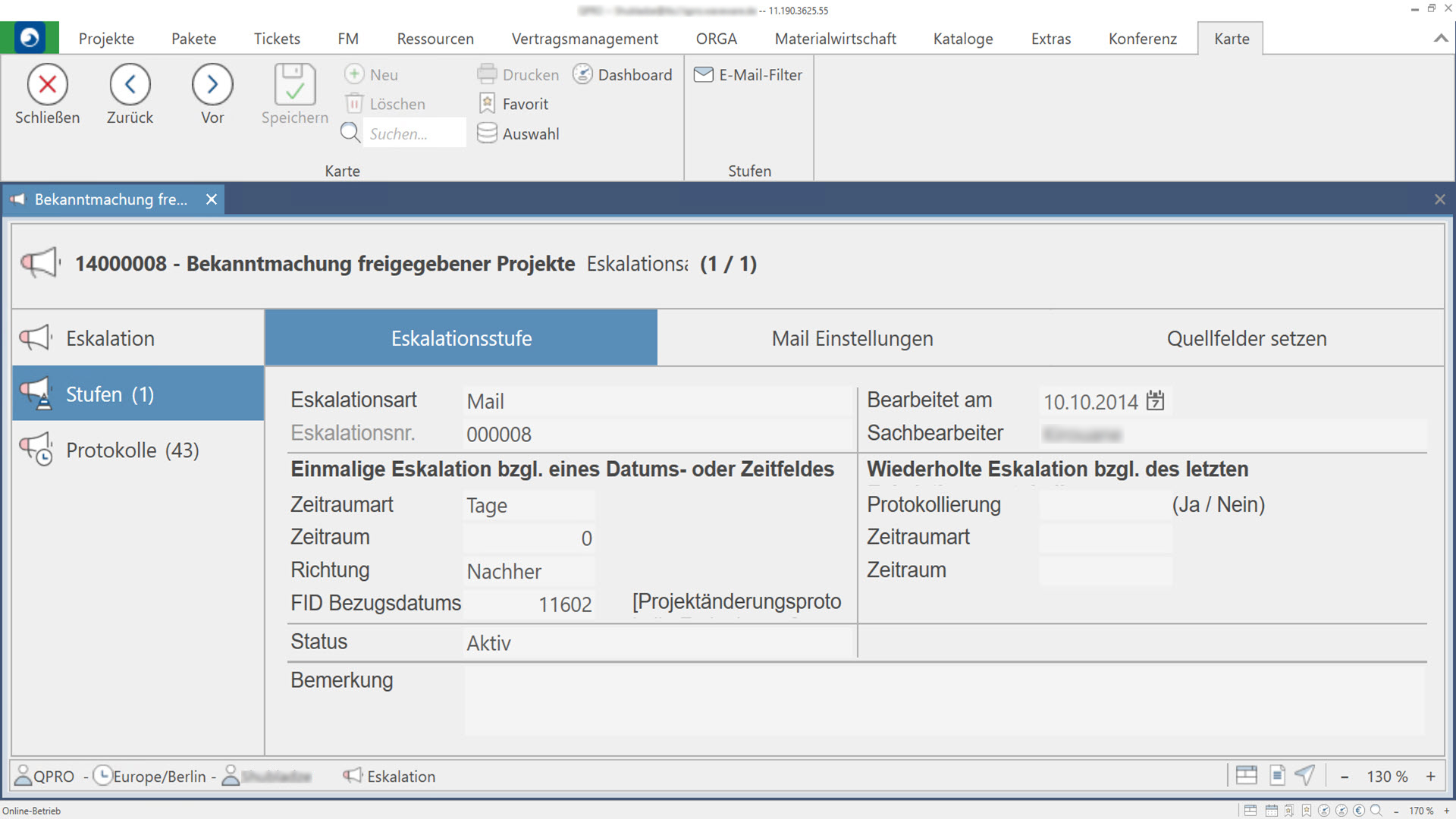 Zu jedem Eskalationsobjekt können Sie beliebig viele Eskalationsstufen einrichten. Hier definieren Sie: