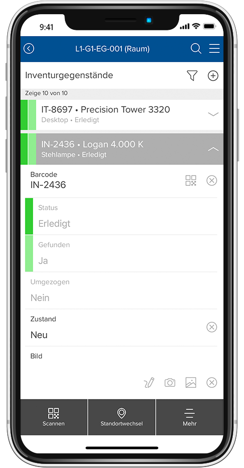 Die Ausführung einer Inventur erfolgt komfortabel per Laptop, Tablet oder Smartphone. Die native Inventur-App für iOS oder Android begleitet Sie durch den intuitiven Prozess. Anhand der Bestandsliste erfolgt die Datenerfassung schnell und einfach: