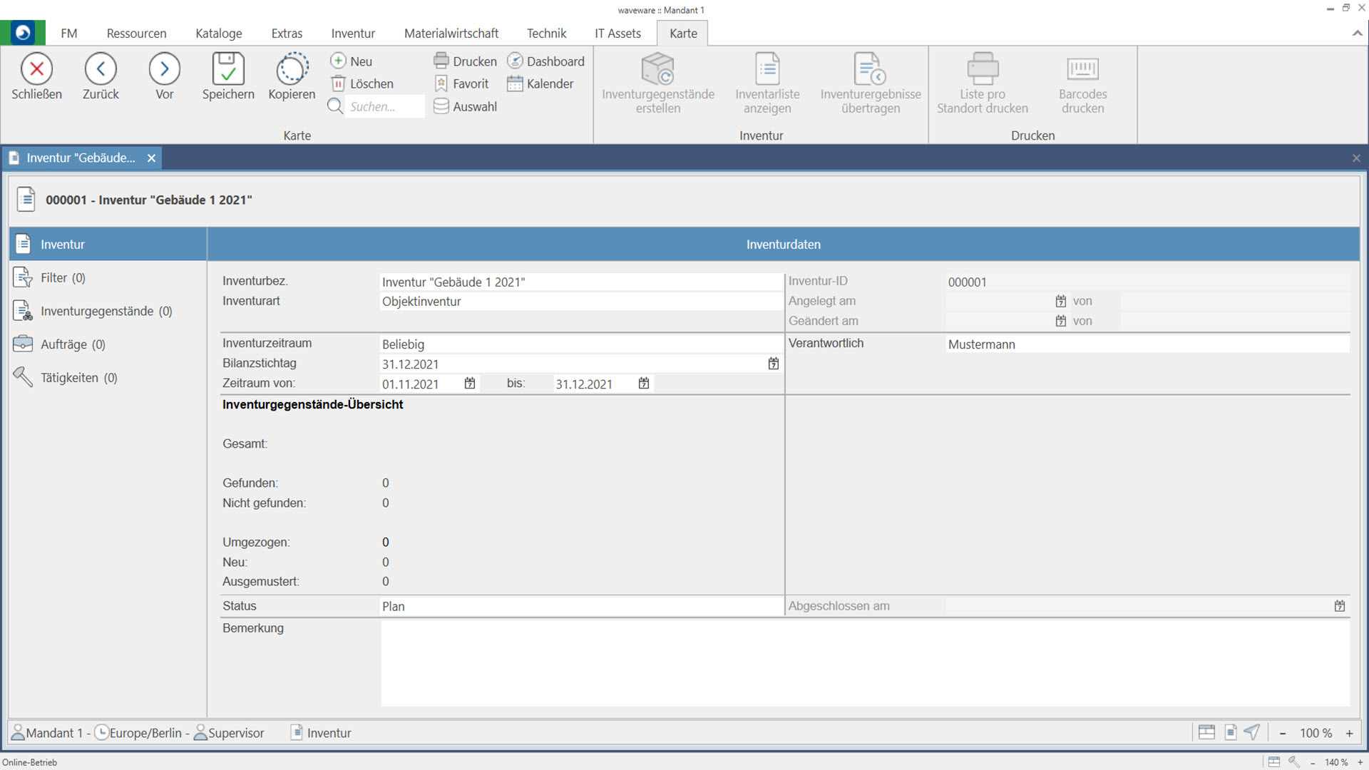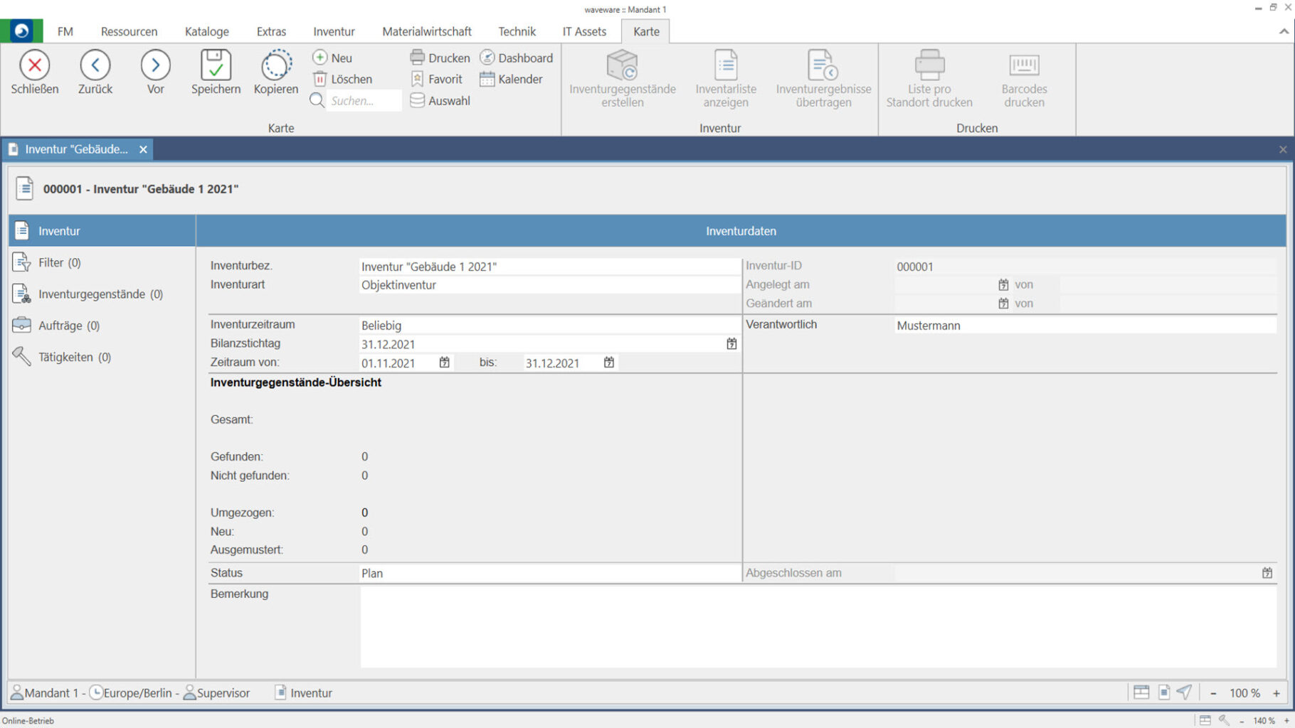 Mit der Inventursoftware INVENTORY erfassen Sie schnell und einfach Ihre Facilities wie Räume, Ausstattungen, Haustechnik, Anlagen, Geräte, Möblierungen und vieles mehr. Sowohl bei der Ersterfassung als auch bei regelmäßig durchgeführten Inventuren erleichtert INVENTORY die Datenerfassung, die Dokumentation des Standortes sowie die Zustandsbewertung Ihrer wertvollen Facilities. In der Materialwirtschaft unterstützt Sie die Inventarisierungssoftware bei der Inventur von Artikeln.