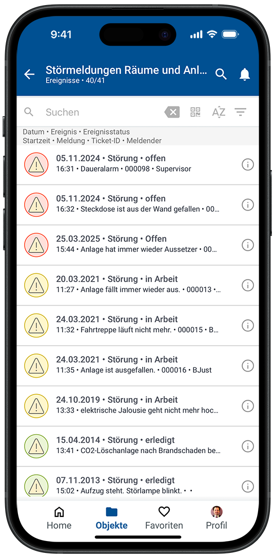 waveware® MOBILE 2 ermöglicht mit seinem Ticketsystem einen guten Überblick über erfasste Störmeldungen.