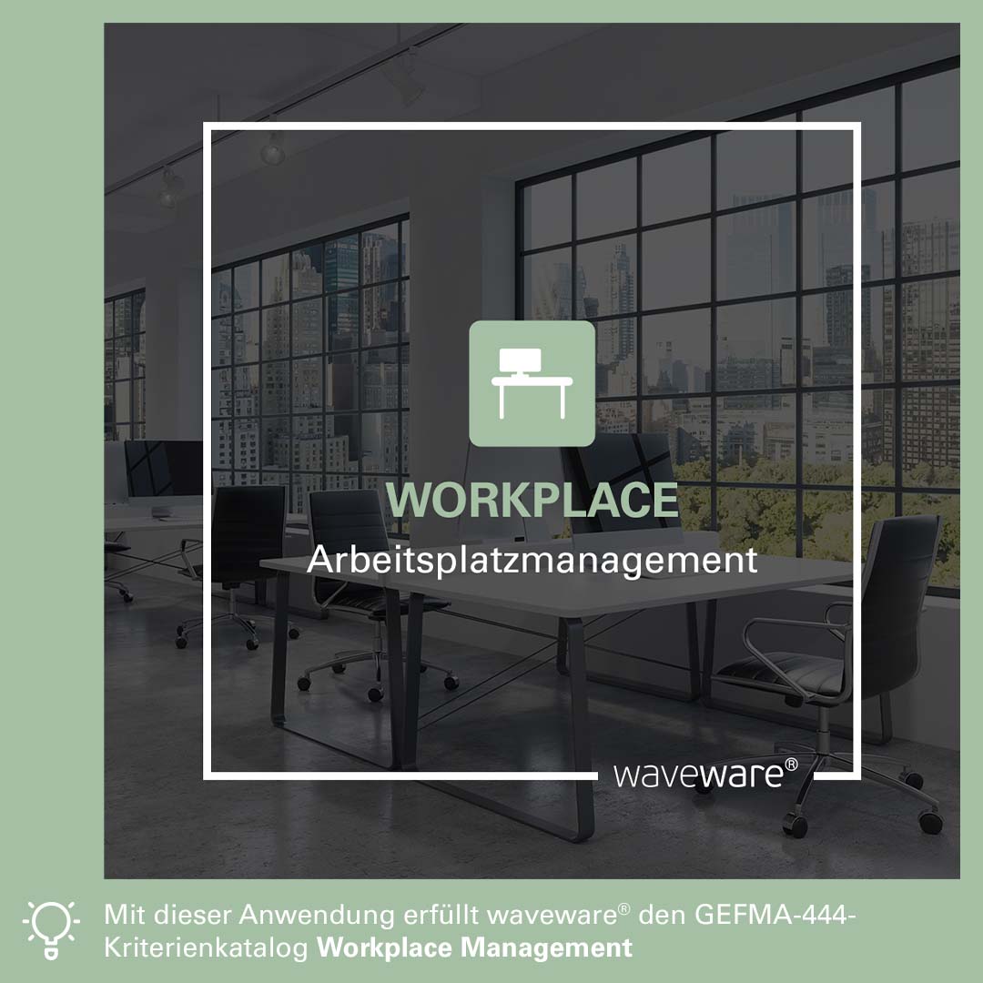 Bereit für die Arbeitsplatzrevolution? Flexibilität und hybrides Arbeiten sind nicht mehr wegzudenken. WORKPLACE gewährleistet den optimalen Gebrauch der Büroflächen. Dies senkt die Kosten durch die Einsparung von Büroarbeitsplätzen. Ob am PC oder Smartphone: Mit wenigen Klicks Einzelarbeitsplätze oder Besprechungsräume stundenweise oder für regelmäßige Team-Meetings buchen. Bedienfreundlichkeit und Komfort stehen hier im Vordergrund. Damit erfüllt WORKPLACE alle Anforderungen des GEFMA-444-Kriterienkatalogs Workplace Management.