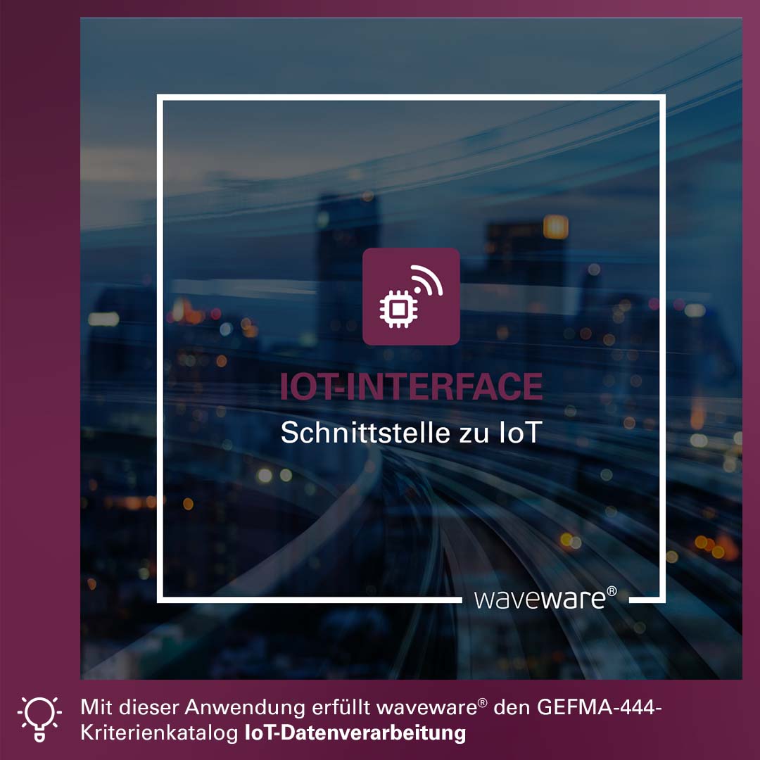Nahtlose Integration von Geräten und Sensoren in waveware®: IOT-INTERFACE ermöglicht den automatisierten Austausch von Echtzeitdaten durch die Anbindung verschiedenster Sensoren und Geräte in waveware®. Das hilft zum Beispiel dabei Ressourcen zu sparen oder Komfort und Sicherheit von Gebäuden zu erhöhen. Probleme lassen sich frühzeitig erkennen und beheben (Predictive Maintenance). Sensoren lassen sich bei vorhandener CAD-Integration in Raumplänen grafisch verorten und effizient verwalten. Die erfassten Daten können problemlos ausgewertet und visualisiert werden. Mit nur wenigen Klicks erhalten Sie Durchschnitts-, Höchst- und Tiefstwerte und können Verlaufskurven für historische Daten einsehen. Damit erfüllt IOT-INTERFACE den GEFMA-444-Kriterienkatalog IoT-Datenverarbeitung.