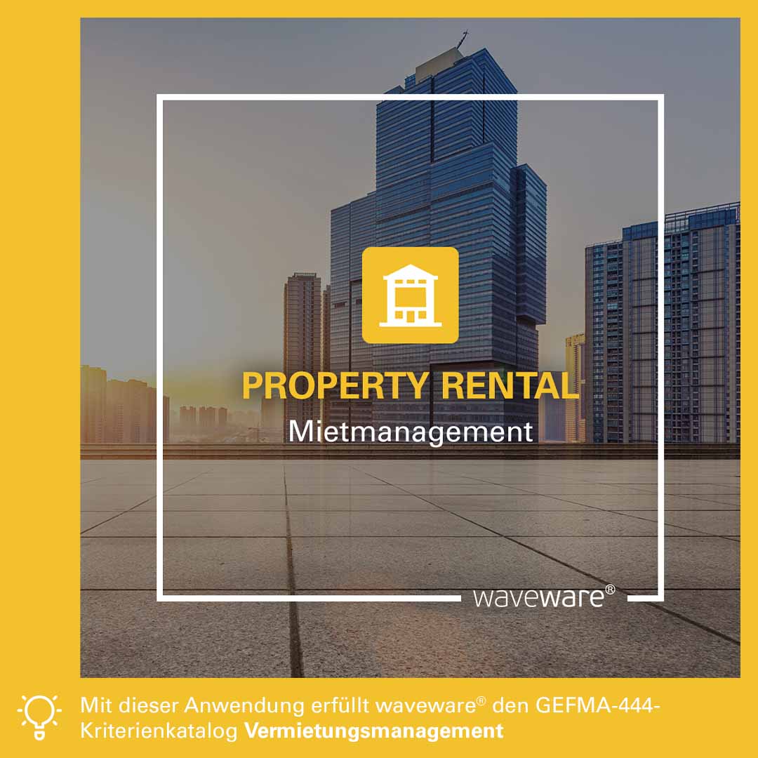 Wirtschaftseinheiten, Gebäudedaten, Nutzungseinheiten, Verträge, Umlageschlüssel, Entgelte und vieles mehr: Mit PROPERTY RENTAL alle Angelegenheiten rund ums Vermietungsmanagement professionell und effizient verwalten! Die Softwareanwendung schafft darüber hinaus die notwendige Basis für eine erfolgreiche Durchführung umfangreicher Auswertungen und der Betriebskostenabrechnung. Damit erfüllt PROPERTY RENTAL den GEFMA-444-Kriterienkatalog Vermietungsmanagement.