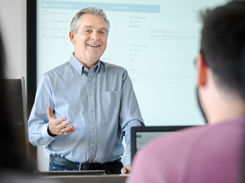 Am meisten treibt mich die Frage um, wie die Qualität unserer Schulungen erhalten und verbessert werden kann. Neben der Optimierung von Inhalten, Abläufen und Unterlagen betrifft dies auch den Einsatz von moderner Medientechnik. Eine besondere Herausforderung besteht darin, mit den softwaretechnischen Entwicklungen Schritt zu halten und die ständigen Erweiterungen und den enormen Funktionsumfang unserer Produkte zu beherrschen.