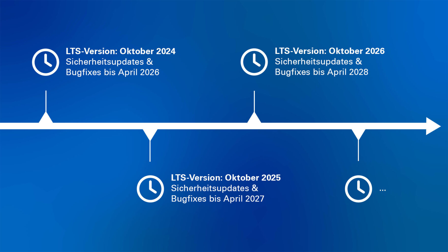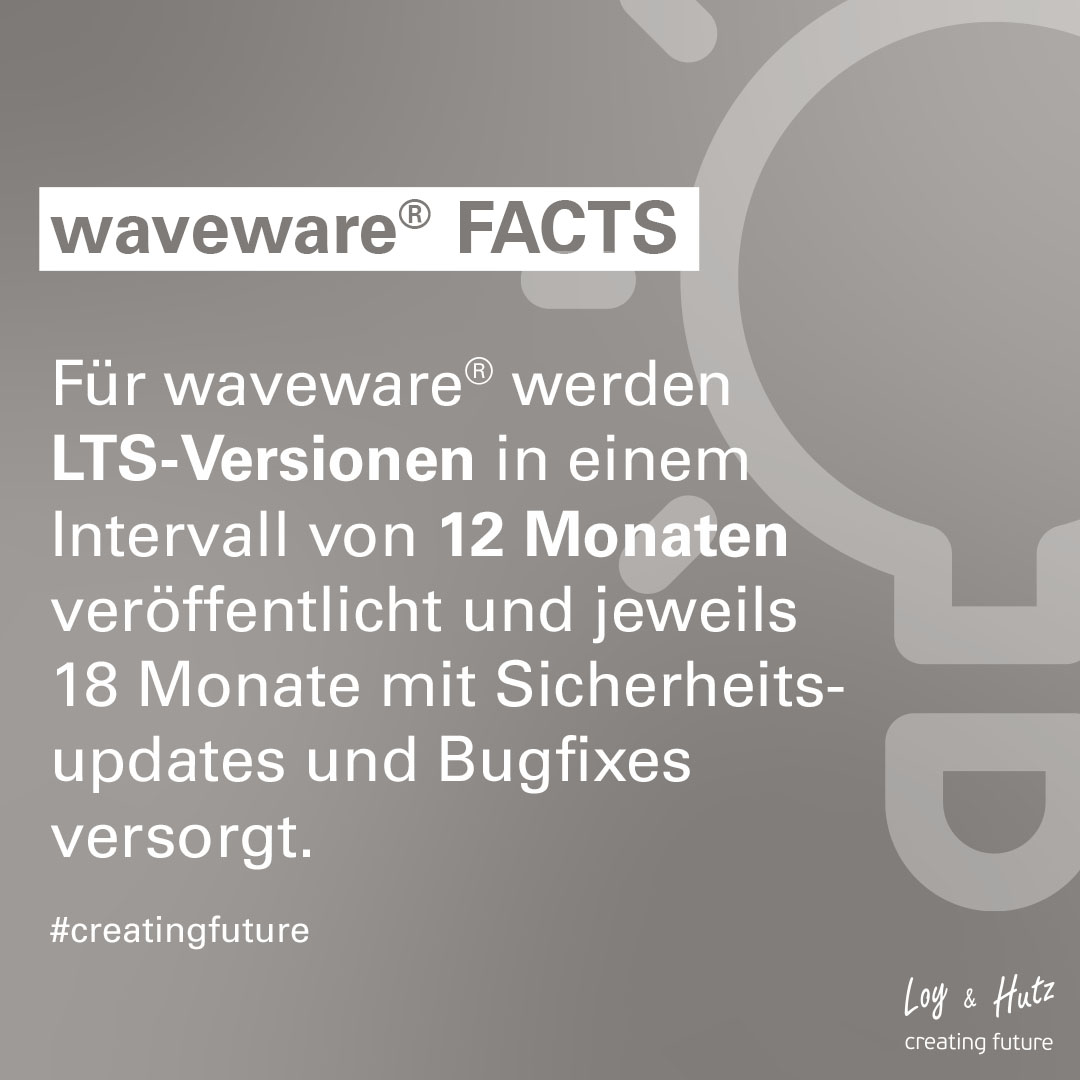 Schon gewusst? Der Begriff Long Term Support Version (kurz: LTS-Version) steht für die langfristige Unterstützung einer bestimmten Version über einen längeren, fest definierten Zeitraum hinweg. Für waveware® werden LTS-Versionen in einem Intervall von 12 Monaten veröffentlicht und jeweils 18 Monate mit Sicherheitsupdates und Bugfixes versorgt. Auf diese Weise müssen weniger umfangreiche Updates durchgeführt werden und eine Version lässt sich über einen längeren Zeitraum mit wenigen Minor-Updates sicher betreiben. Für wen lohnt sich die LTS-Version? Die LTS-Version richtet sich an Kunden, die nicht immer die neusten Features benötigen und mehr Wert auf Beständigkeit sowie vereinfachte Update-Abläufe legen.