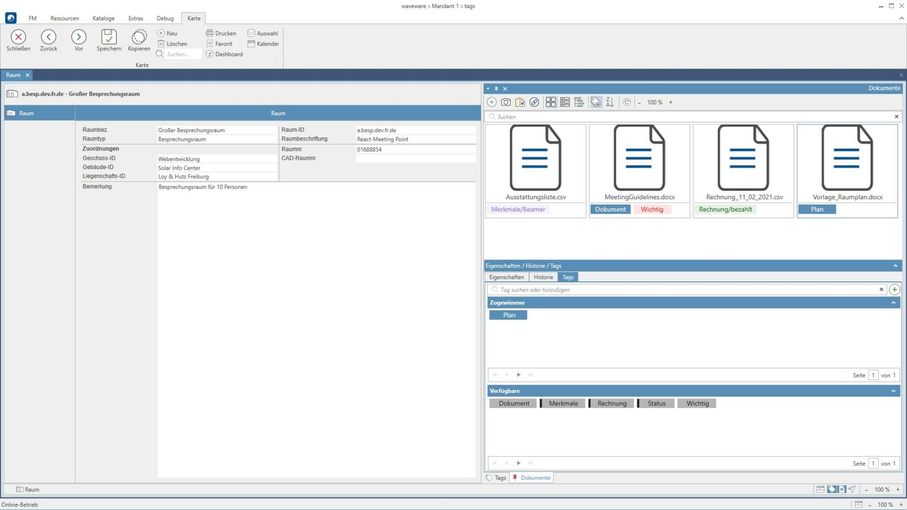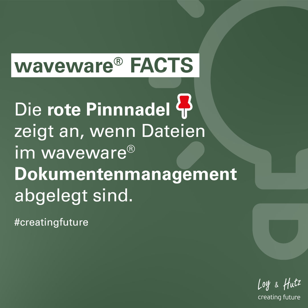 Die rote Pinnnadel zeigt an, wenn Dateien im waveware® Dokumentenmanagement abgelegt sind. Ob Aufträge, Verträge, Berichte, Gebäudepläne, Fotos oder Protokolle, mit dem waveware® Dokumentenmanagement (DMS) lassen sich alle Dokumente an der richtigen Stelle ablegen. Das Dokumentenmanagement ist als Systemfunktion standardmäßig in waveware® enthalten.