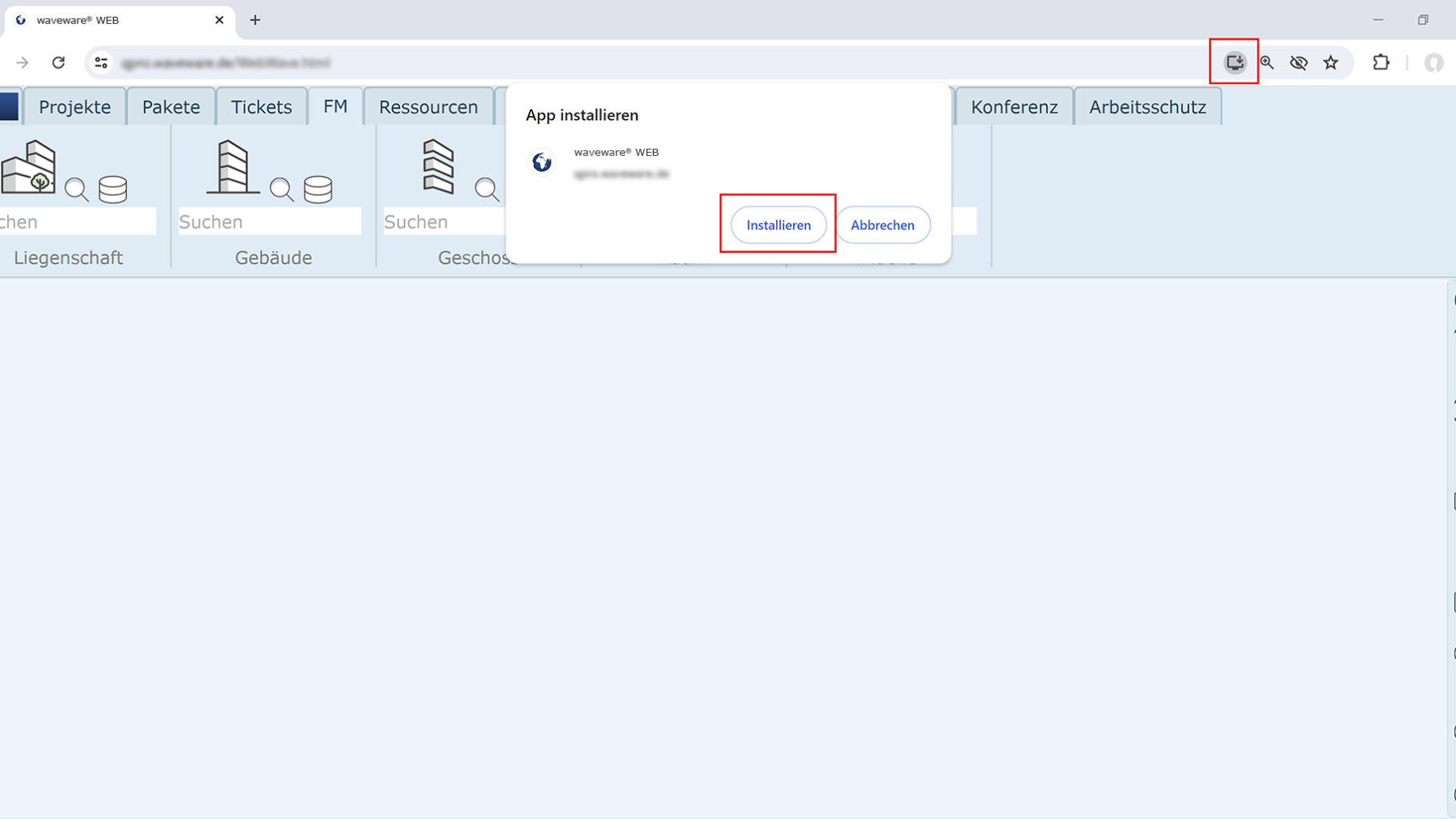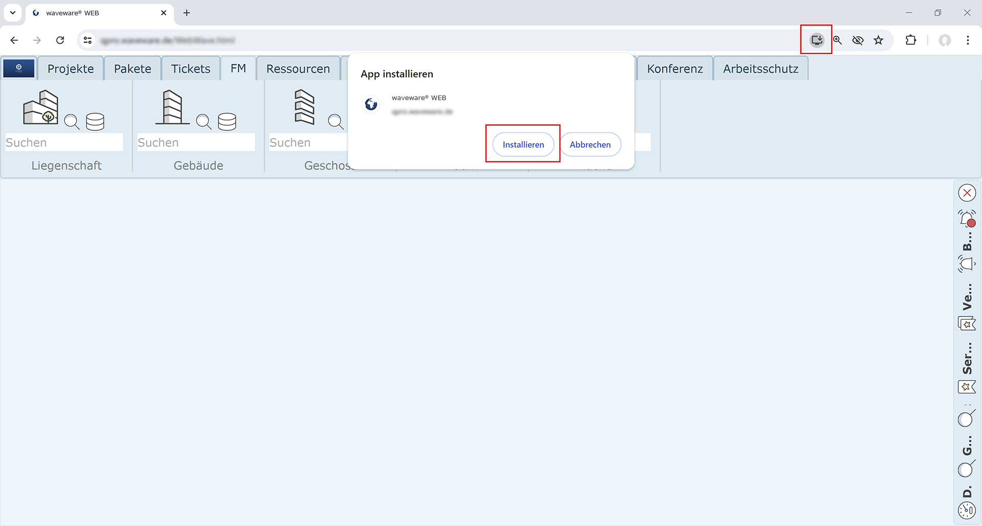 Schon gewusst? Der waveware® UX-Client und waveware® WEB-Client lassen sich via Browser (Microsoft Edge oder Google Chrome) als Windows-App installieren und sind so immer griffbereit. Die Vorteile: Die Clients öffnen sich unabhängig vom Browser in einem eigenen Fenster und verhalten sich wie Windows-Anwendungen. Dadurch wird es möglich, die Apps an die Taskleiste anzuheften und mit einem Klick zu starten. So funktioniert’s: UX- bzw. WEB-Client in Microsoft Edge oder Google Chrome öffnen und in der Adressleiste rechts auf das Hinzufügen- bzw. Download-Symbol klicken.