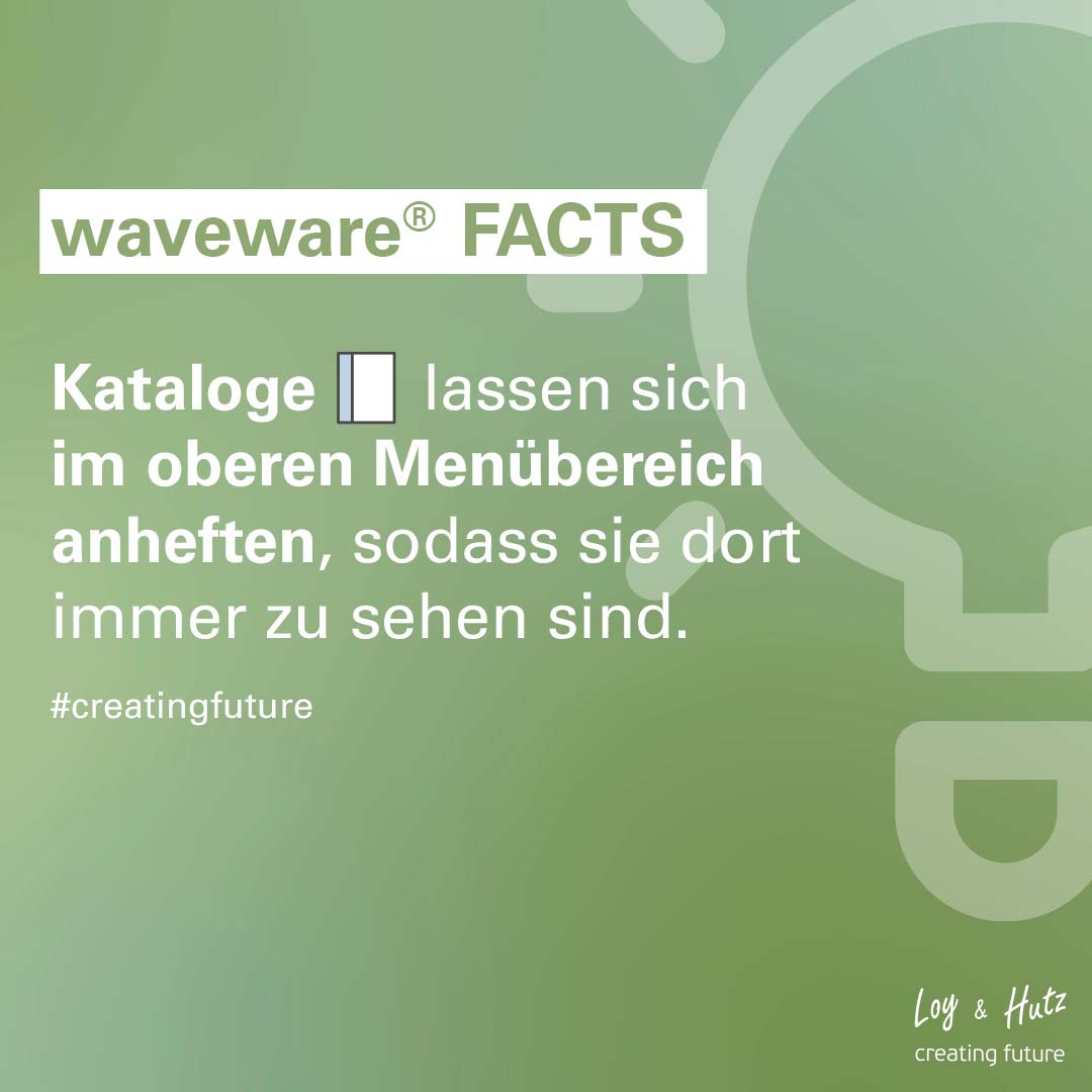 Schon gewusst? Kataloge lassen sich im oberen Menübereich anheften, sodass sie dort immer zu sehen sind. Dafür einfach im waveware® Windows-Client den gewünschten Katalog in der Katalogsuche suchen und per Rechtsklick als Favoriten hinzufügen. So sind oft benötigte Kataloge jederzeit griffbereit.
