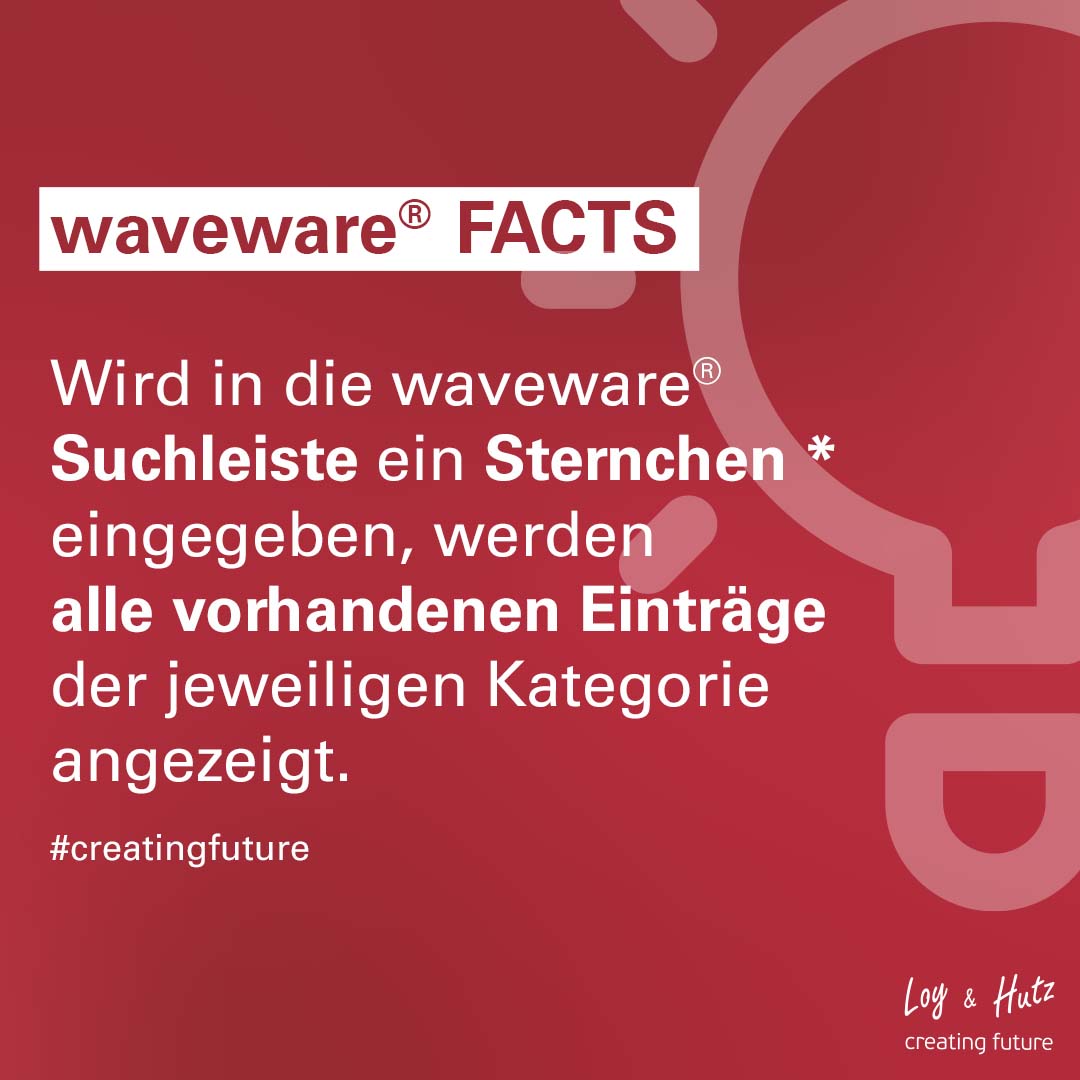 Schon gewusst? Wird in die waveware® Suchleiste ein Sternchen * eingegeben, werden alle vorhandenen Einträge der jeweiligen Kategorie angezeigt. Diese Funktion ist in allen waveware® Anwendungs-Clients verfügbar und erleichtert es, einen schnellen Einblick in die Objekte der jeweiligen Kategorie zu gewinnen.